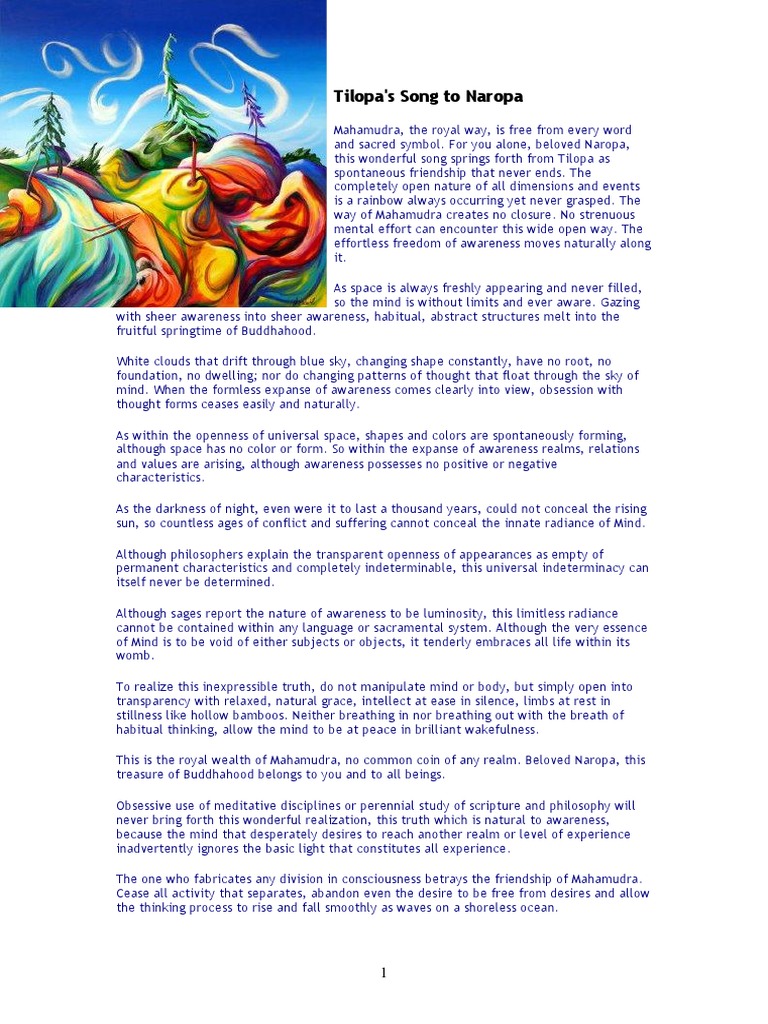 Tilopa S Song To Naropa Mahamudra Buddhahood