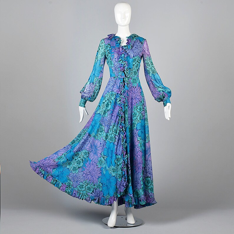 Small La Mendola Flowy Maxi Dress Long Sleeve Silk Dress Etsy