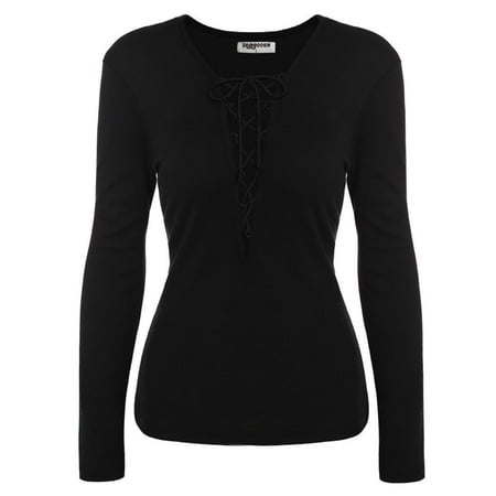 Generic Zeagoo Women S Sexy Lace Up Deep V Neck Long Sleeve Top