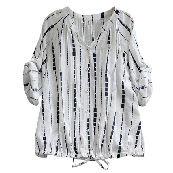 Women Top T Shirt Casual Striped Drawstring Bow Lace Up V Neck